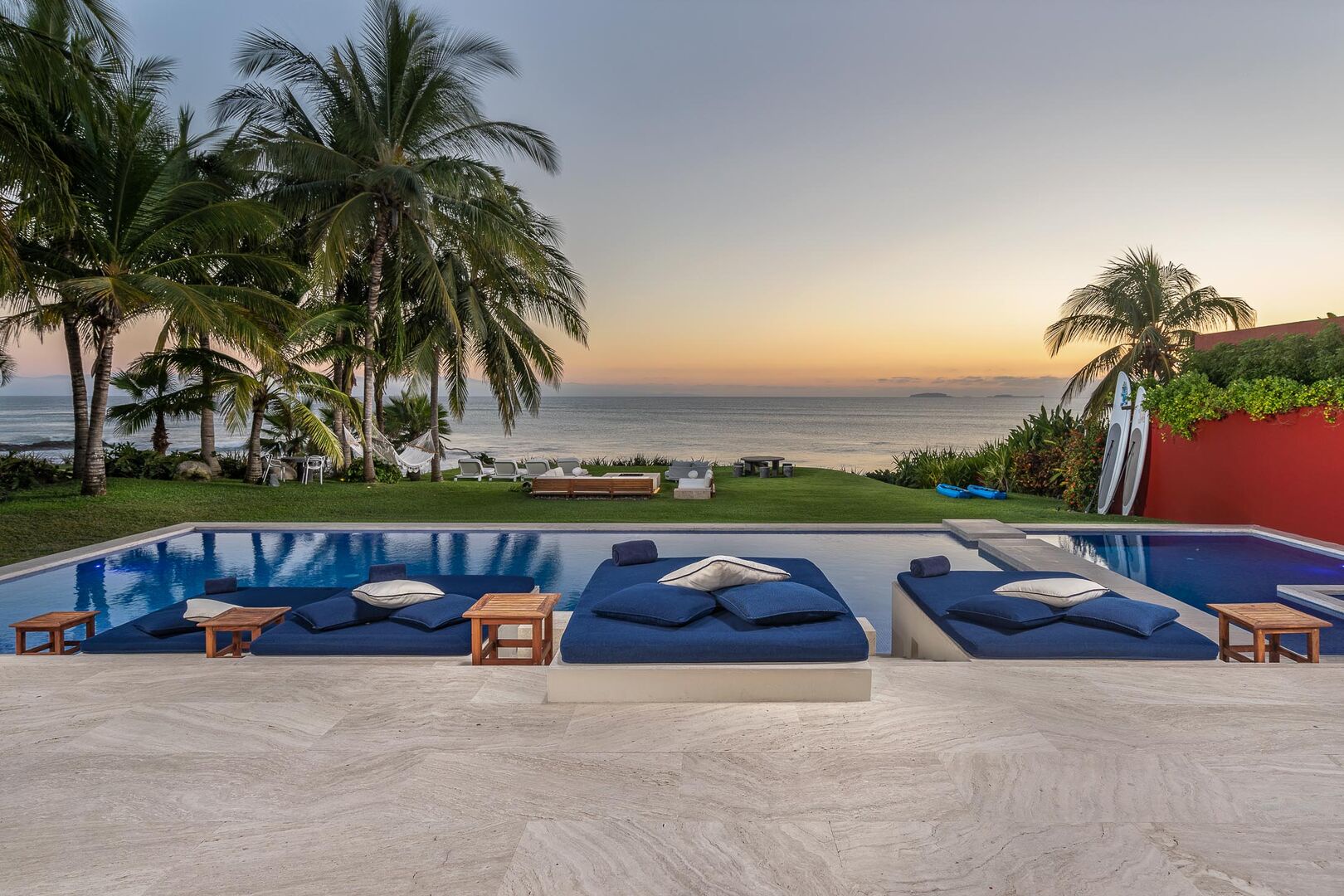 Villa Pacifica offers a prime location on the Pacific coast, celebrating the rich culture of Mexico with every breathtaking sunset. Designed to reconnect family and friends, our team invites you to experience the true spirit of Mexican hospitality in this luxurious retreat. Located within the private, ultra-luxurious 1,500-acre community of Punta Mita in the Riviera Nayarit, Villa Pacifica is just one hour from Puerto Vallarta. This five-bedroom beachfront property, designed by renowned architect Pepe de Yturbe, spans an impressive 11,000 square feet and is perched within the exclusive Ranchos Estates, just steps away from the ocean.