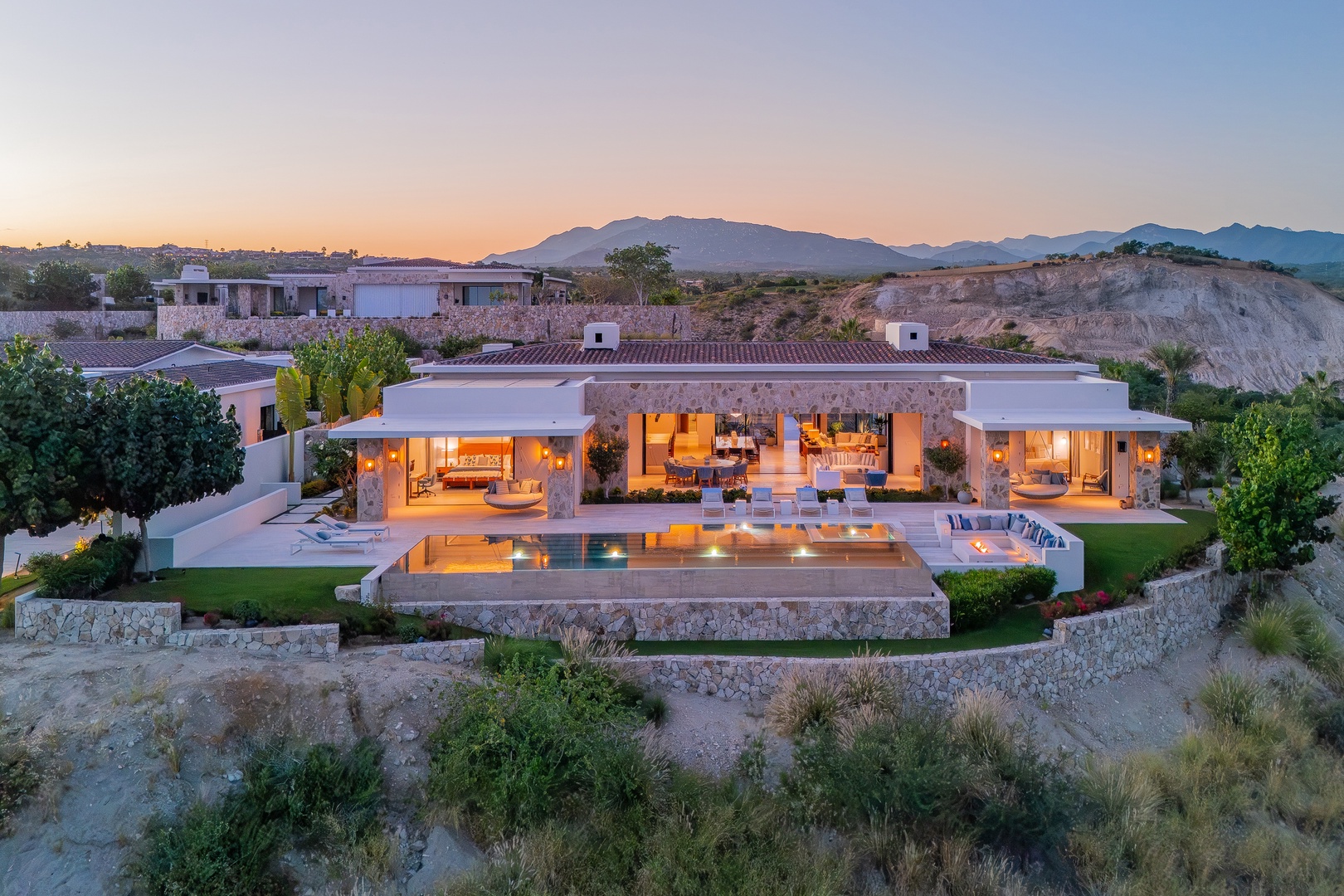 Nestled in the exclusive community of Querencia in San José del Cabo, Villa Casa del Campo offers a serene and luxurious retreat. This private five-bedroom villa blends elegant hacienda-style design with stunning views of the Sea of Cortez, the Baja desert, and an impressive vantage point overlooking the Querencia golf course.