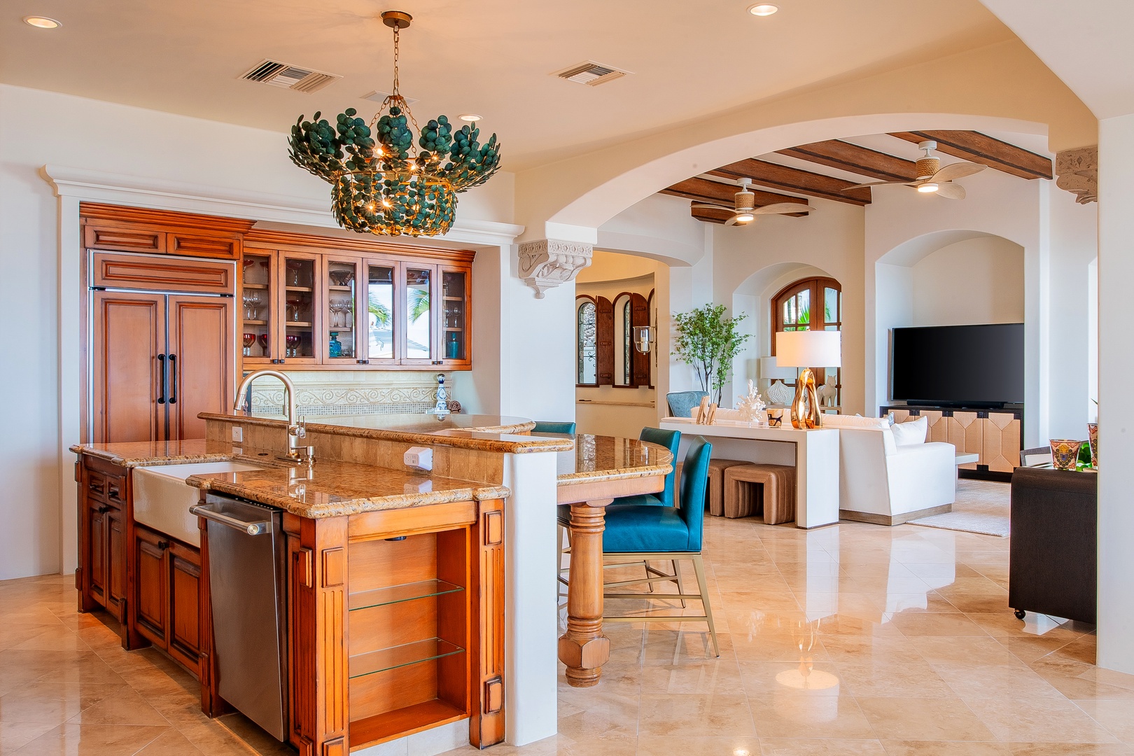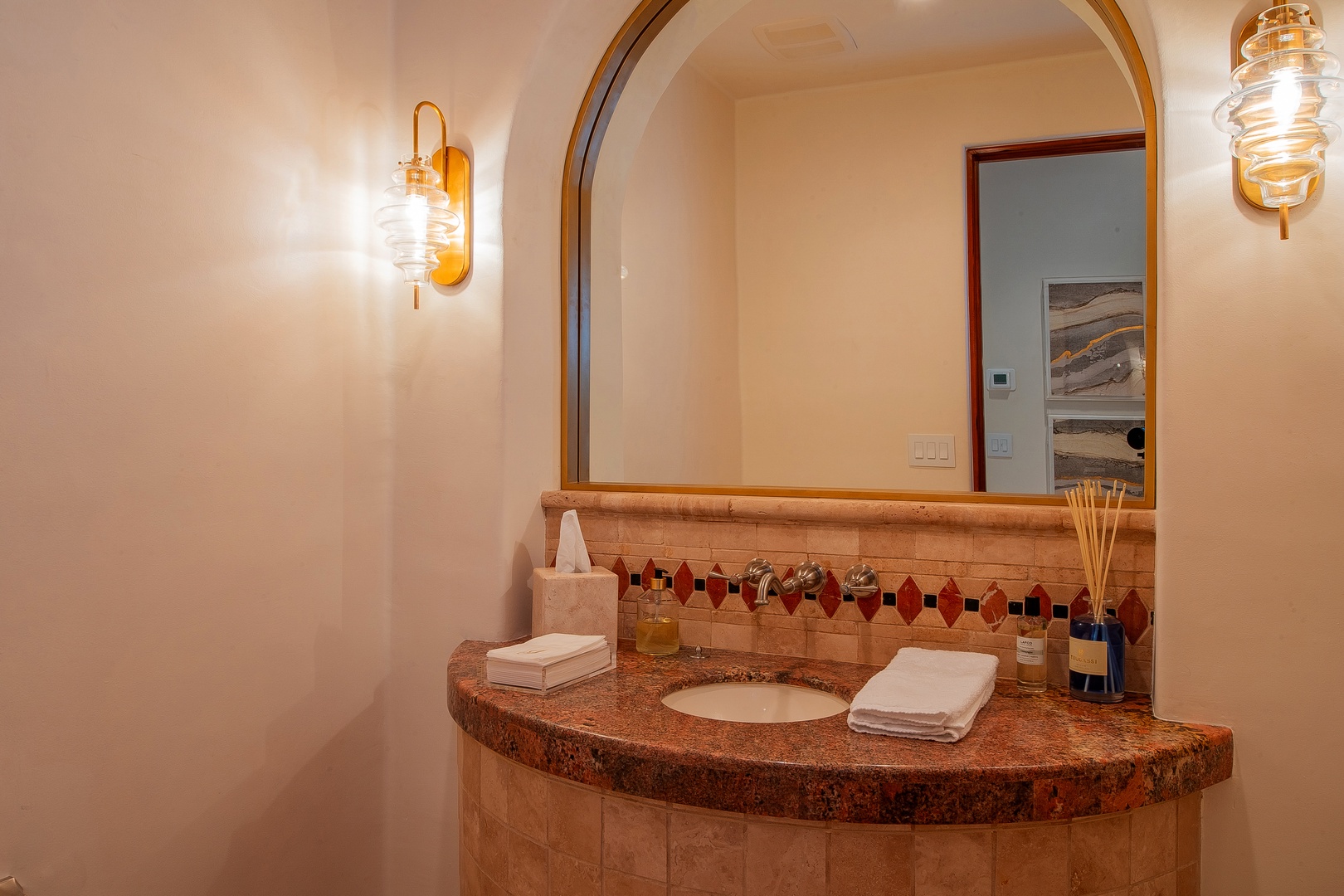 Stepping inside Villa Alegre, guests will find a space designed to bring the old-world charms of Mexico into the modern comforts of today’s most luxurious getaway experience imaginable. From the decorative tilework and terra cotta detailing to stone archways and designer furnishings, this villa pairs the ultimate of both worlds to create a stay that’s one-of-a-kind for guests. Villa Alegre boasts an open concept floorplan across all levels which makes it simple for guests to move with ease between living, dining, entertainment, and sleeping spaces during their stay. The floorplan is also designed to include vaulted ceilings and large windows throughout. The combination of these features not only enhances the overall sense of living space available but gives guest access to a great view at all times while promoting natural light flow as well.