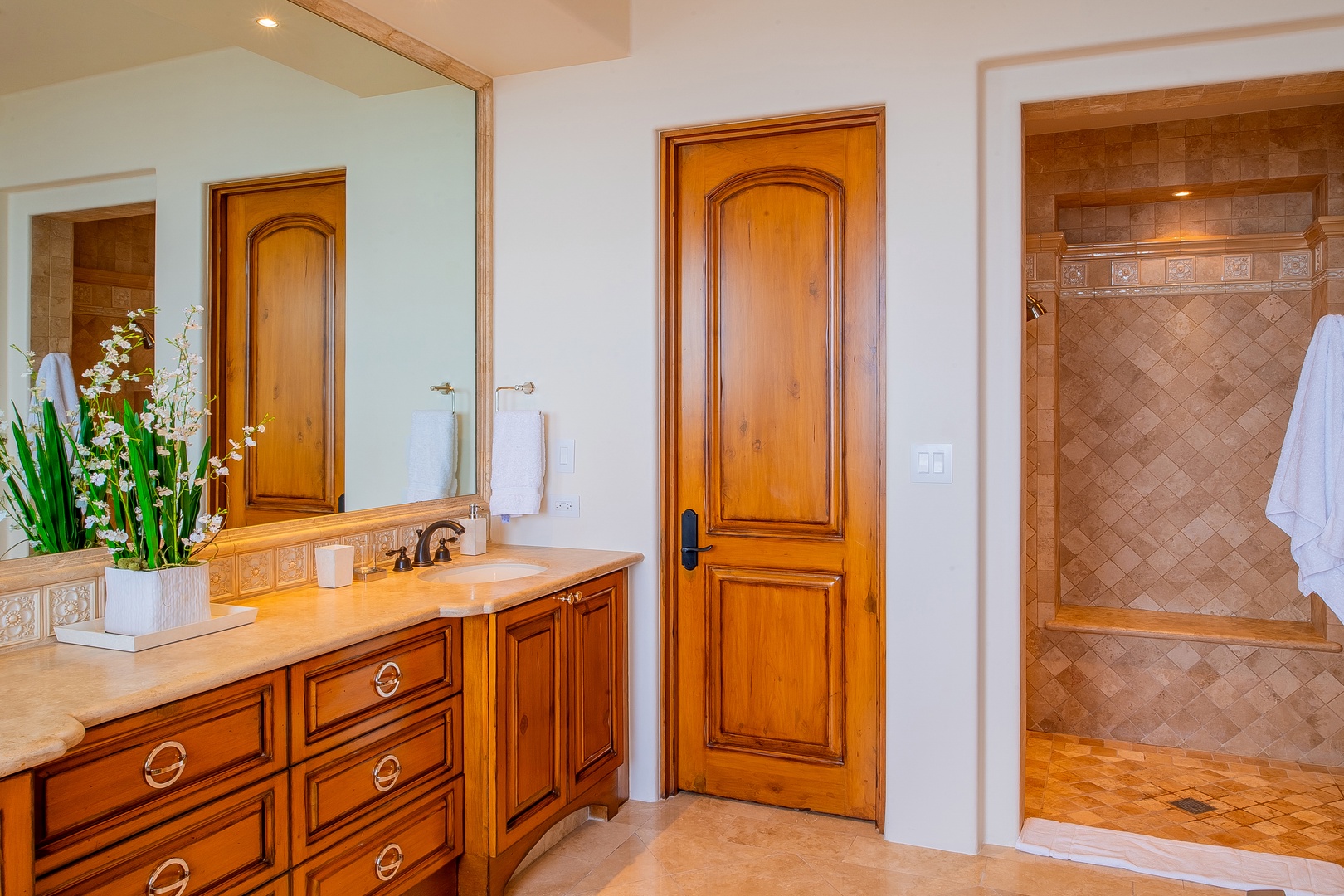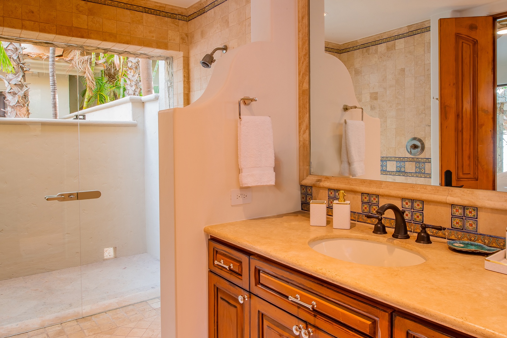When it’s time to get a good night’s rest, guests who book Villa Alegre will find that each of the four bedrooms in this home offers up a space to enjoy that’s designed around relaxation and restoration alike. Bedrooms are spacious and come complete with en suite baths as well as private outdoor access points, further emphasizing indoor and outdoor living. Mattresses in each bedroom are plush and topped with high-quality linens and well as eye-catching comforters to match. Tiled showers and tubs bring in the modern comforts in these bedrooms while dark wood detailing once again incorporates that appealing traditional aesthetic.