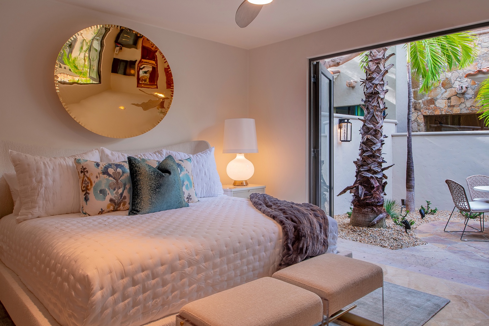 Booking a stay in Villa Alegre means never being far from the fresh-air fun. This property opens up to a sprawling patio overlooking the Sea of Cortez where guests are free to savor the fantastic view day and night. The patio is dotted with a collection of loungers and chairs that are well-worth settling into. There’s also a full outdoor dinning set for those nights when an alfresco meal is exactly what would hit the spot. When the sun goes down, gathering around the fire pit with a glass of wine proves equally appealing. On those hot Los Cabos days, there’s nothing more refreshing than soaking in the villa’s private pool or hot tub sipping on a margarita served up by the in-home butler. Whatever it is guests choose to enjoy in the great outdoors during their stay, they’ll find that embracing a vacation state of mind is made simple when Villa Alegre is their home away from home.